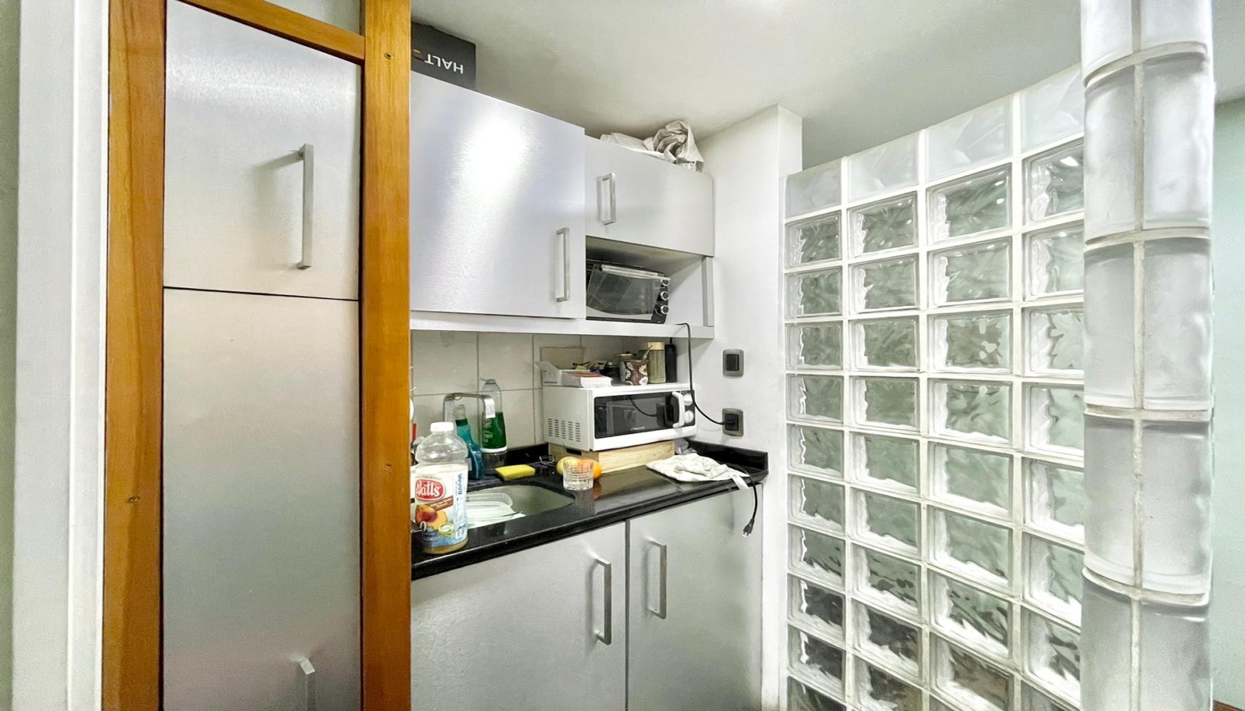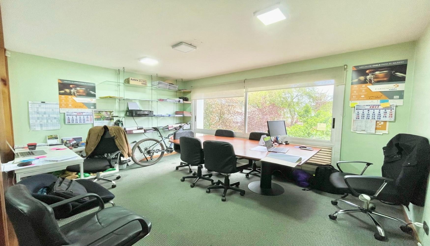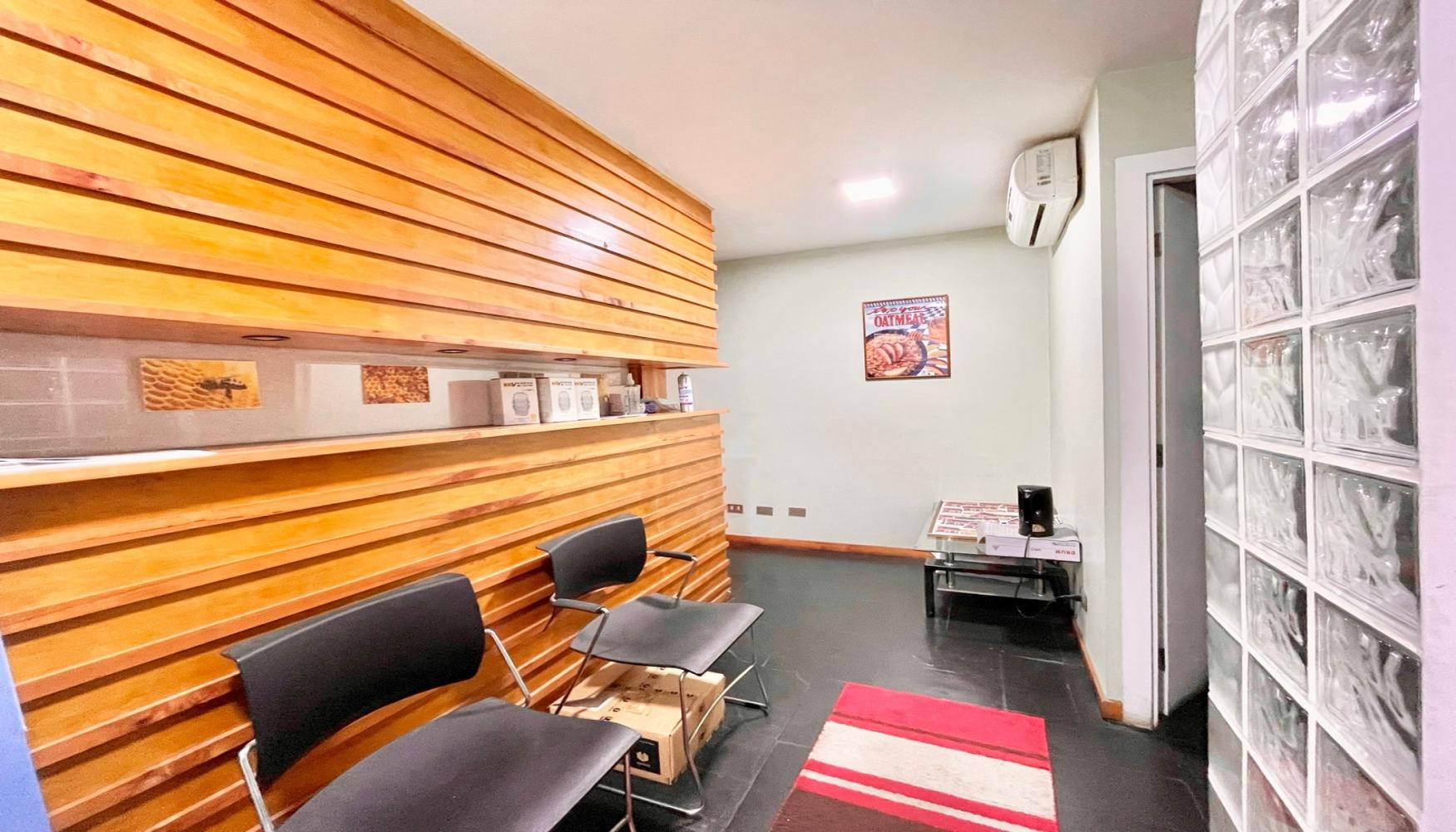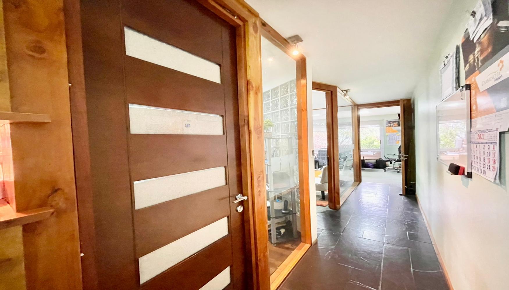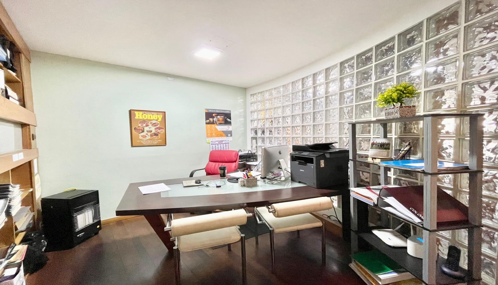 Área de recepción, 2 amplios privados, 1 sala de reuniones con biblioteca, un baño, kitchenette equipada, aire acondicionado. Ubicada en un 2do piso de un edificio de 3,