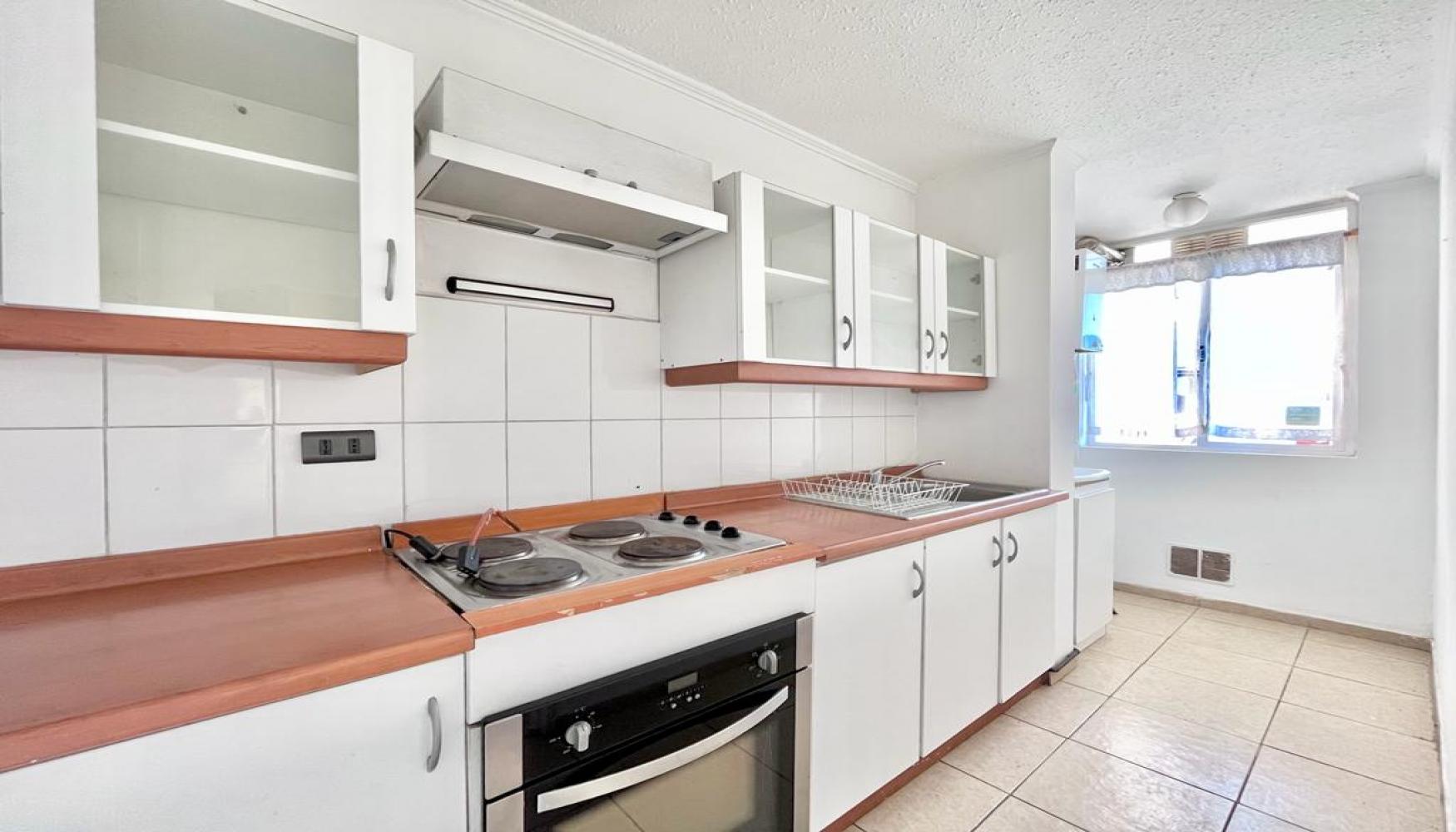 Se vende departamento luminoso de dos piezas un baño y con estacionamiento. Ubicado en condominio Altos del Boldo, excelente conectividad, cercano a Homecenter, supermercados, hospital, colegios, jardín infantil