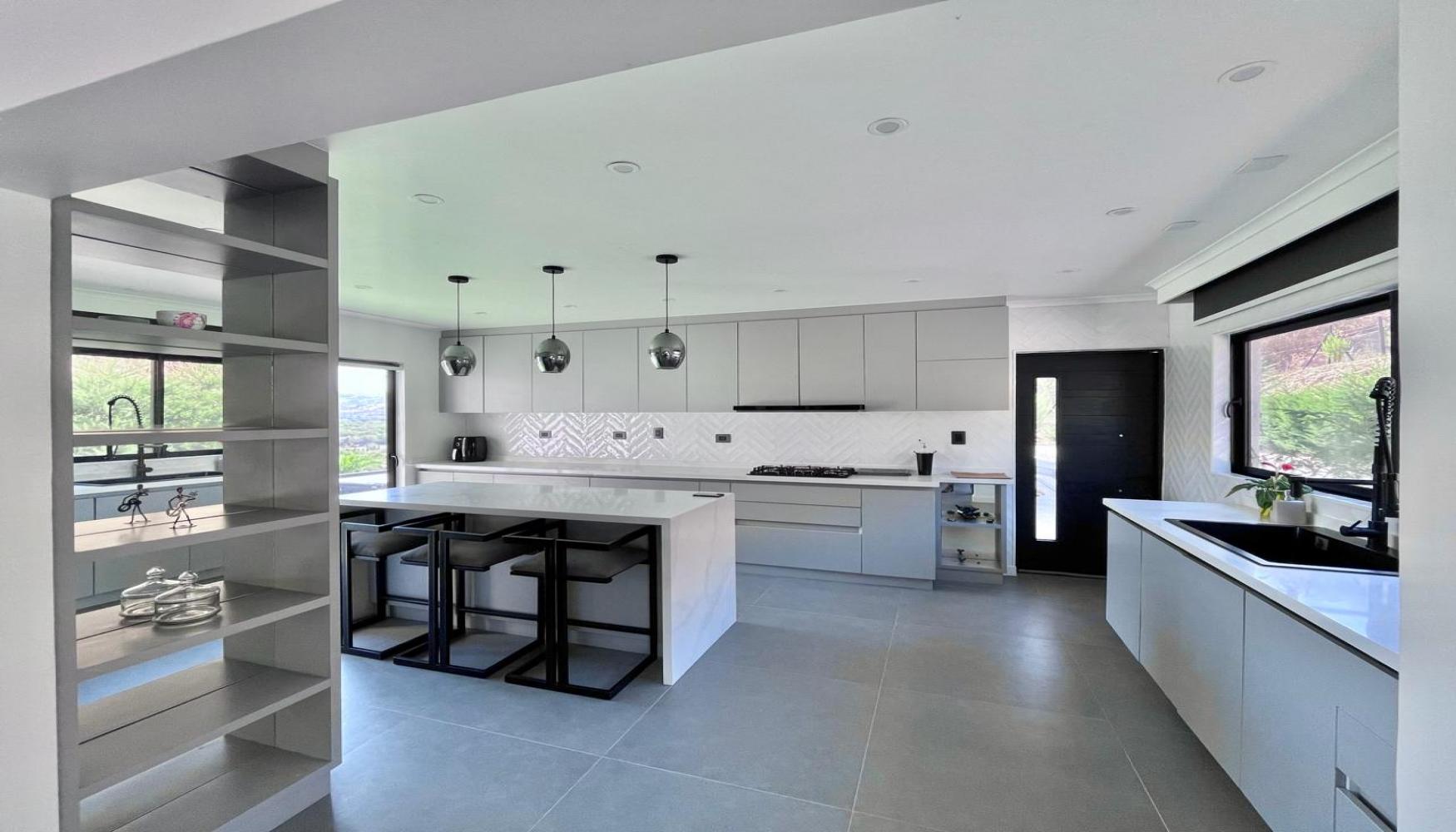 Casa con diseño arquitectónico de dos pisos, el primer piso es de hormigón armado y segundo piso de material liviano. Todos los ventanales en termopanel.